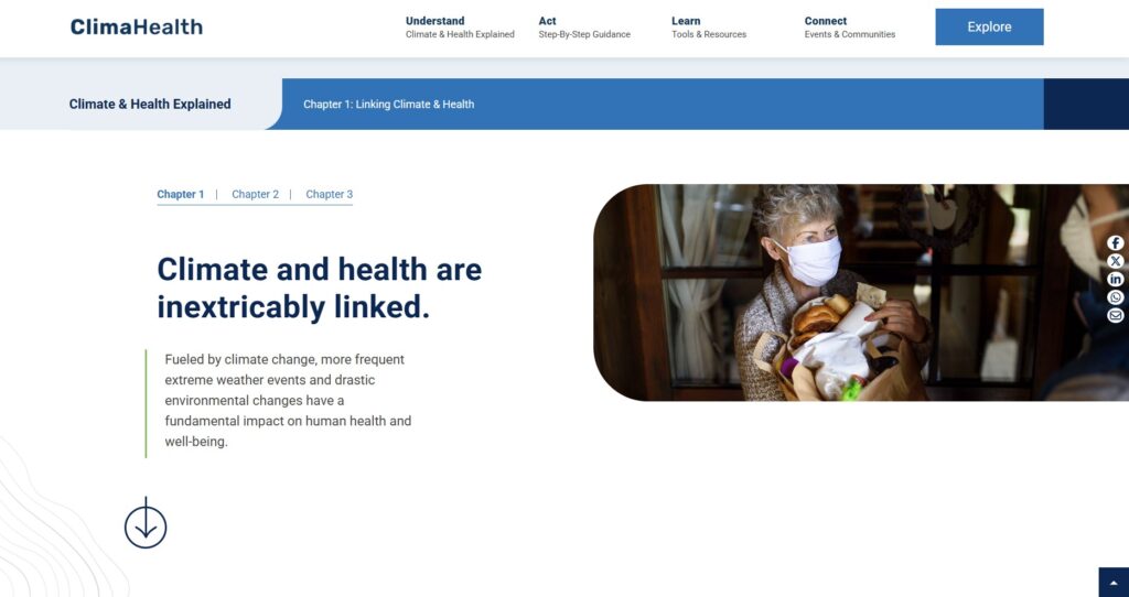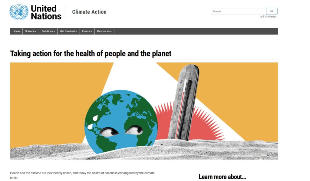 From extreme weather events, air pollution to threatened access to food security and safe water- there are many ways in which climate change affects global health. Climatehealth.info and the UN Climate Action are excellent places to start